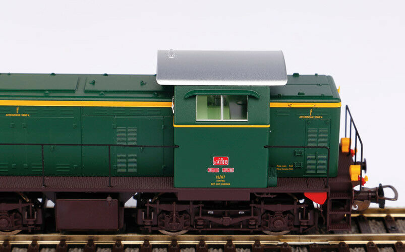 FS locomotiva diesel D.141 1019 Dep.Padova, con battipiede e corrimani bruno, meravigliosa, luci a led bianco/rosso ad inversione in base al sensodi marcia, luce in cabina attivabile in DCC, predisposizione al sistema digitale tramite decoder Plux22, predisposizione al sound, Sistema Ne,m, Lunghezza <15,2> Cm. Scala H0.