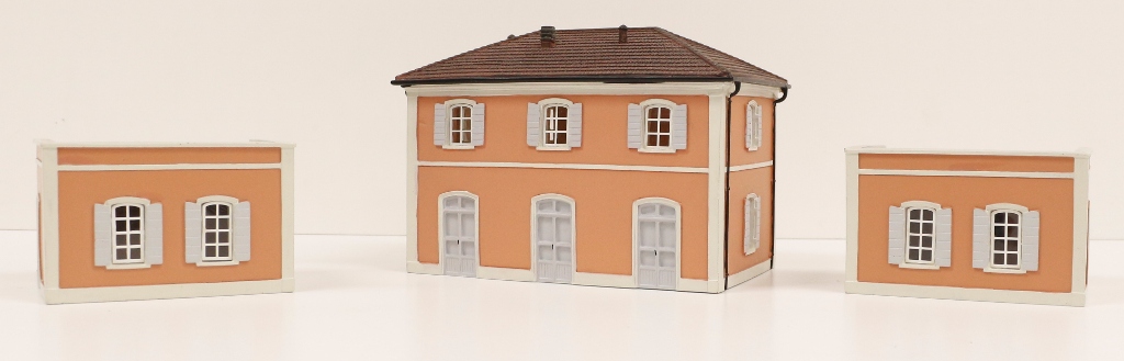 Stazione tipica FS Scala 1/87 H0.In resina completamente montata e finemente verniciata.Dimensioni Lunghezza mm.234 x Larghezza mm.80 x Altezza mm.95.